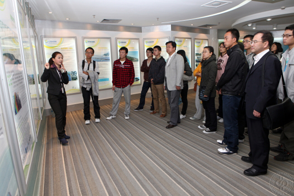签约仪式后,刚文哲一行还参观了新奥探索之路展览室、硅基薄膜太阳能电池生产线、煤基低碳能源国家重点实验室。新奥集团的地下气化采煤技术、煤催化气化技术、太阳能源全息集成技术、微藻生物技术等先进技术极大的开阔了学生们的视野,引起了学生对新能源、新技术的极大兴趣,纷纷表示希望有机会能来到新奥集团工作和发展。
