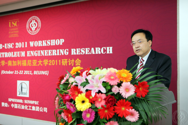 21日上午,校长张来斌、中石化科技部副主任张永刚、南加州大学工程学院院长Yannis Yortsos博士参加开幕式并分别致辞。张来斌对中石化提供的资助表示感谢,对与南加州大学的深入交流和合作充满期待。张永刚在致辞中指出,中国石油大学与南加州大学都是世界知名的著名学府,通过此次研讨会开启的三方合作,将会为中石化今后的发展带来更多的技术和智力支持,也会为两个学校的发展注入活力。