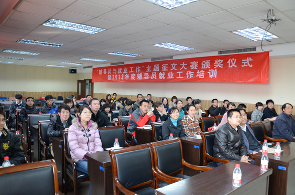 3月20日,就业指导中心举行“2012年度辅导员就业工作系列培训暨‘辅导员与就业工作’主题征文颁奖仪式”。信息学院、商学院党委副书记及就业指导中心负责人为2012年度“辅导员与就业工作”主题征文大赛及“我的未来不是梦”学生就业征文大赛的获奖教师及学生颁奖,就业指导中心老师针对2012年国家及地方的就业政策及就业手续等内容对毕业班辅导员进行了培训。