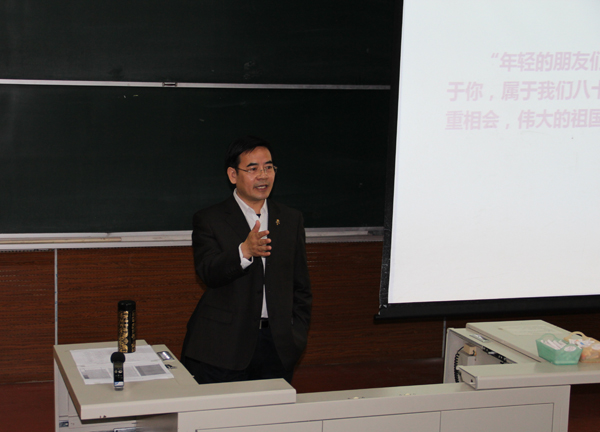 蒋庆哲的报告分三个部分:中华民族伟大复兴需要一大批有志青年、促进青年学生健康成长是学校的核心任务、青年学生要坚定理想信念全面成长成才。