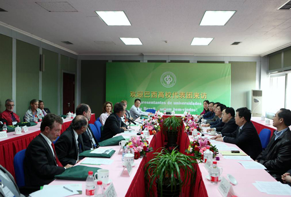 3月29日下午,巴西高校代表团来中国石油大学访问。校长张来斌会见了代表团一行,副校长吴小林主持了见面会。地学院、化工学院、信息学院、教务处、研究生院、科学技术处、国际合作与交流中心负责人和部分教授代表参加了会见和交流。