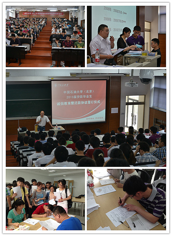 5月16日-17日,中国石油大学学生资助管理中心面向全校300余名贷款毕业生集中进行诚信教育,并组织现场签订还款协议。