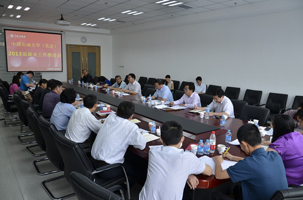 5月23日上午,中国石油大学召开2013届毕业生就业工作推进会,讨论部署进一步推进2013届毕业生就业工作。校党委书记蒋庆哲、党委副书记雷玉江,教务处、研究生院、学生工作处、就业指导中心等部门负责人,以及各学院负责人参加了会议。会议由雷玉江主持。