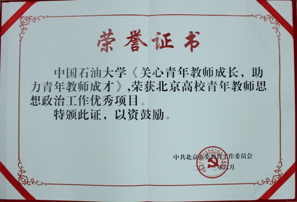 6月27日下午,北京高校青年教师思想政治工作座谈会在北京会议中心举行。会上对荣获北京高校青年教师思想政治工作优秀项目的学校进行了表彰。中国石油大学申报项目《关心青年教师成长,助力青年教师成才》获得北京高校青年教师思想政治工作优秀项目。