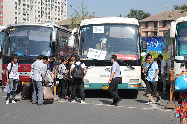 当天凌晨,学校的校车和志愿者们就出发赶往火车站迎接新生。