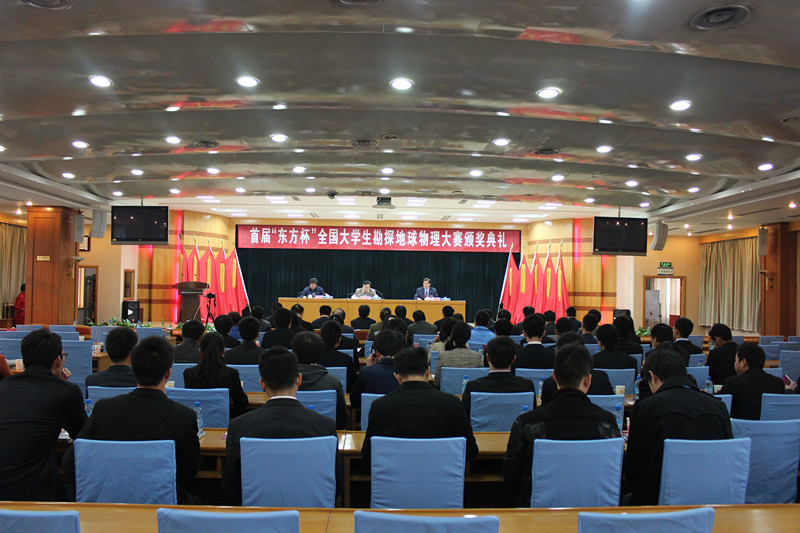 颁奖典礼上,张来斌致辞并发表重要讲话,代表学校向对本次大赛给予大力支持的SEG、东方地球物理公司、中国石油学会石油物探专业委员会表示感谢,向各高校的支持以及一直以来关心和支持全国大学生勘探地球物理大赛发展的各级领导和专家表示感谢。他指出,大赛的举办符合中国石油大学(北京)的办学理念,学校始终以“善待学生”为人才培养的根本出发点。所谓“善待学生”就是要让学生享受社会上最优质的资源,获得有更多的选择机会,选择专业、选择课程、选择老师,让学生们得到更多的关注和尊重。当前,我国正在大力推行创新型国家建设,需要高校培养出更多的创新型人才,本次大赛是一次有益的探索和实践,大赛在比赛过程中使用国产GeoEast软件解决生产中的实际问题,是探索产学研相结合的又一成功案例。同时,大赛也为不同高校和科研院所的老师、学生之间建立了沟通和交流的平台,达到了创新型人才培养的目的。首届“东方杯”全国大学生勘探地球物理大赛的成功举办,实现了地球物理学科领域全国性学科技能竞赛零的突破,在地球物理高等教育史上具有里程碑式的意义。首届大赛的举办得到了国际学术平台SEG的支持,得到了全球知名物探公司东方地球物理公司的全程赞助,由石油高校的领军大学中国石油大学来承办,大赛起点高、层次高,在行业领域内参赛学生多、规模大,相信很快会得到勘探地球物理学科领域学生们和老师们的认可、世界的认可。他期待大赛不断开拓,早日走向国际,成为国际勘探地球物理领域的重要赛事。