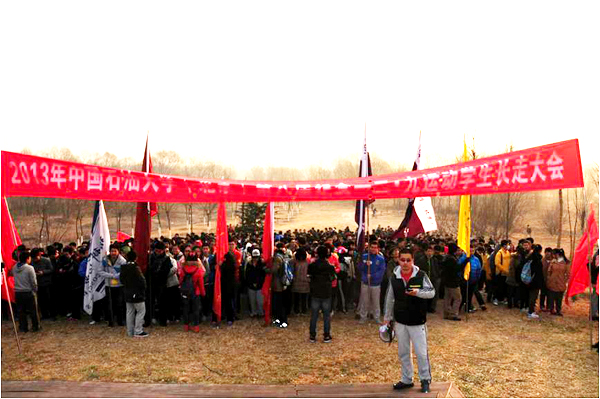 12月7日上午,由石大体育教学部主办的2013年中国石油大学第八届纪念一二·九学生运动长走大会在昌平区滨河森林公园举行,来自石大14个学院和单位的850余人参加了活动。