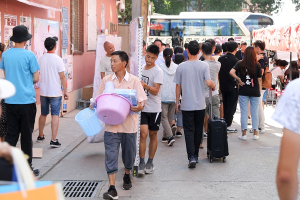 迎新期间,党委书记山红红、校长张来斌分别来到东校园、润杰学生公寓看望报到的新生和家长,检查迎新工作。他们详细查看了各学院、各社团的新生接待点,向迎新工作人员询问新生报到情况,与新生和新生家长亲切交谈,勉励新生珍惜时光、厚积薄发,用青春书写精彩人生。
