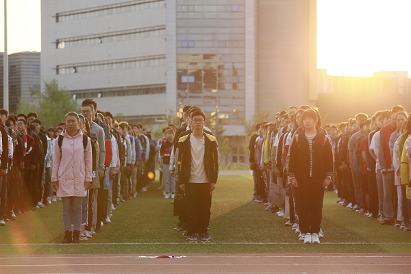 清晨八点半整,迎着初升的朝阳,升国旗仪式正式开始。国旗仪仗队迈着整齐划一的步伐护送五星红旗。随着庄严的国歌声奏起,全体师生目瞩国旗冉冉升起,一同高唱国歌,鲜艳的五星红旗迎风飘扬,在阳光下熠熠生辉。