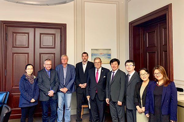在罗斯托克大学,代表团一行会见了该校校长Wolfgang Schareck以及废弃物与资源管理学院、活塞与内燃机实验室负责人。双方围绕加强新能源、机械工程等专业领域合作与开展学生交流交换项目等内容深入探讨并达成共识。代表团一行参观了该校内燃机重点实验室和废弃物与资源管理重点实验室。