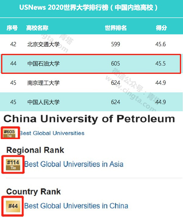 U.S.News2020世界大学排行榜发布 石大进步明显