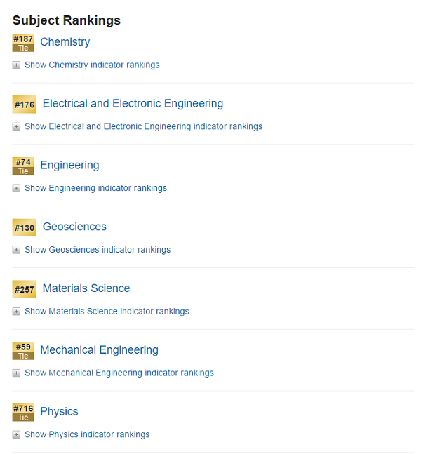 在同时公布的U.S.News2020世界大学学科排行榜中,石大凭借2个全球排名TOP100学科以及共计7个上榜学科,位居内地高校第51位。其中,石大机械工程学科的世界排名为第59位,在内地高校中名列第26位;工程学的世界排名为第74位,在内地高校中名列第19位;地球科学的世界排名为第130位,在内地高校中名列第9位;电气与电子工程的世界排名为第176位,在内地高校中名列第45位;化学的世界排名为第187位,在内地高校中名列第31位;材料学的世界排名为第257位,在内地高校中名列第50位,物理学的世界排名为第716位,在内地高校中名列第69位。根据目前表现,国际排名第59位的机械工程非常具备冲击全球学科TOP50的潜力,国内排名第9位的地球科学也非常具备冲击全球学科TOP100的潜力。此次排名结果全方位表明了石大学科发展的喜人态势,以及我们在“双一流”建设过程中的卓越成效。