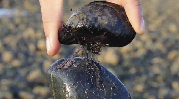 贻贝是一种双壳类软体动物,生活在海滨岩石上,煮熟后食用或者加工成干品有很高的营养价值和药用价值。贻贝身长不足10厘米,却能附着在坚硬的岩石表面,10级风暴也难以撼动它。