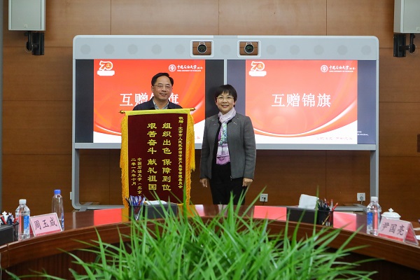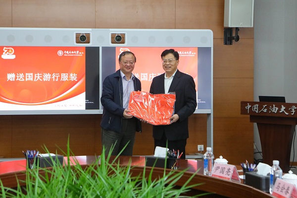 座谈会开始前,石大与北京市国资委、农工委举行了互赠锦旗仪式与游行服装赠予仪式。
