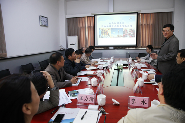 4月22日上午,陕西胜利高原石油工程技术服务有限公司总经理郭公建一行5人到石大访问交流,副校长张士诚与科学技术处、就业指导中心、对外合作与发展处负责人,以及石油工程学院、化学工程学院、理学院有关专家教授会见了客人。