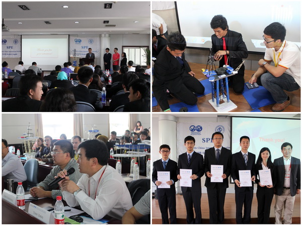 516日至17日,石大举办首届国际海洋钻井平台设计大赛。来自国内外10余所高校的14支队伍进行了平台的设计和制作,并进行了承重测试。来自SPE北方分会、中国石油大学(北京)、常州大学、延安大学以及中海油钻井事业部的相关人员观看了比赛,对作品进行了评审。
