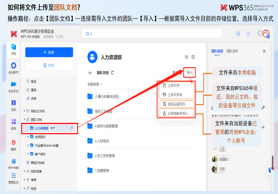 (3)创建好团队后进入,点击【导入】,根据文件存储位置选择导入文件的方式,✅��������导入完成后,即可按照下文进行团队所有权转让