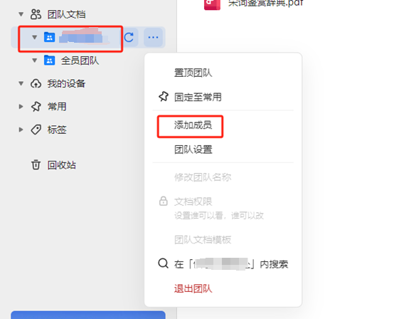(2)邀请成员加入团队,点击【团队名称】→【添加成员】: