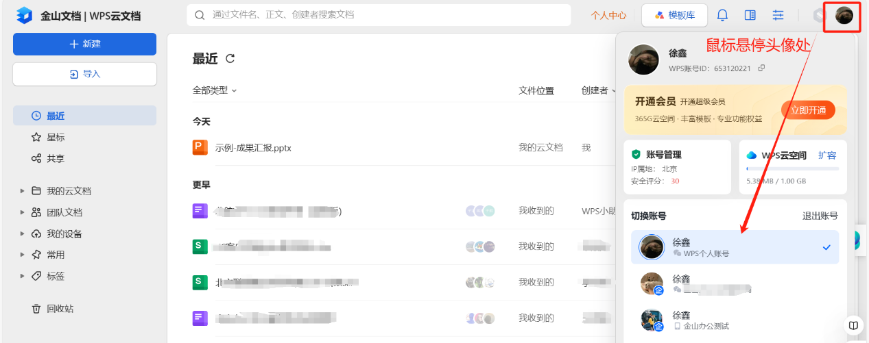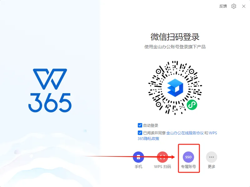 打开客户端,选择"sso专属账号"登录方式,输入“cup",在中国石油大学(北京)统一身份认证登录界面中输入学工号和密码,点击账号登录,即可进入学校账户下。或直接访问网页端激活:https://wps.cup.edu.cn。