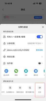 (2)在新页面中点击「邀请成员」,再在新弹窗里复制链接给参会人员。被邀请人员点击链接即可进入会议文档: