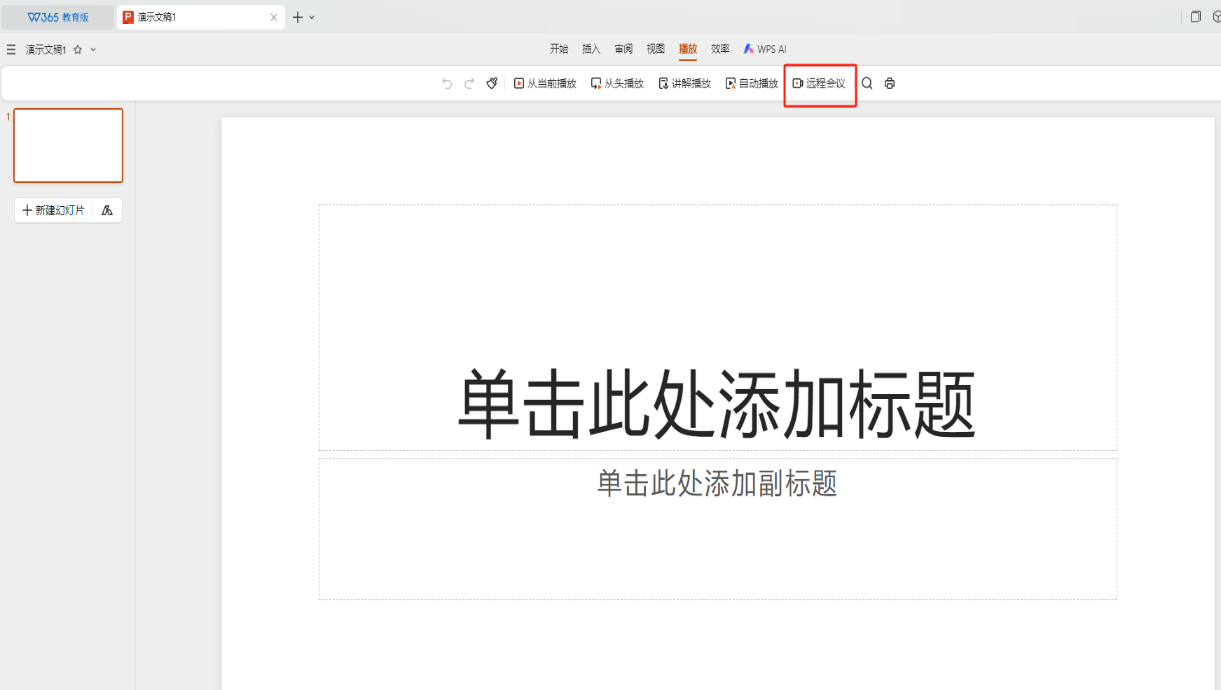 (1)打开WPS office演示文档,点击【播放】-【远程会议】: