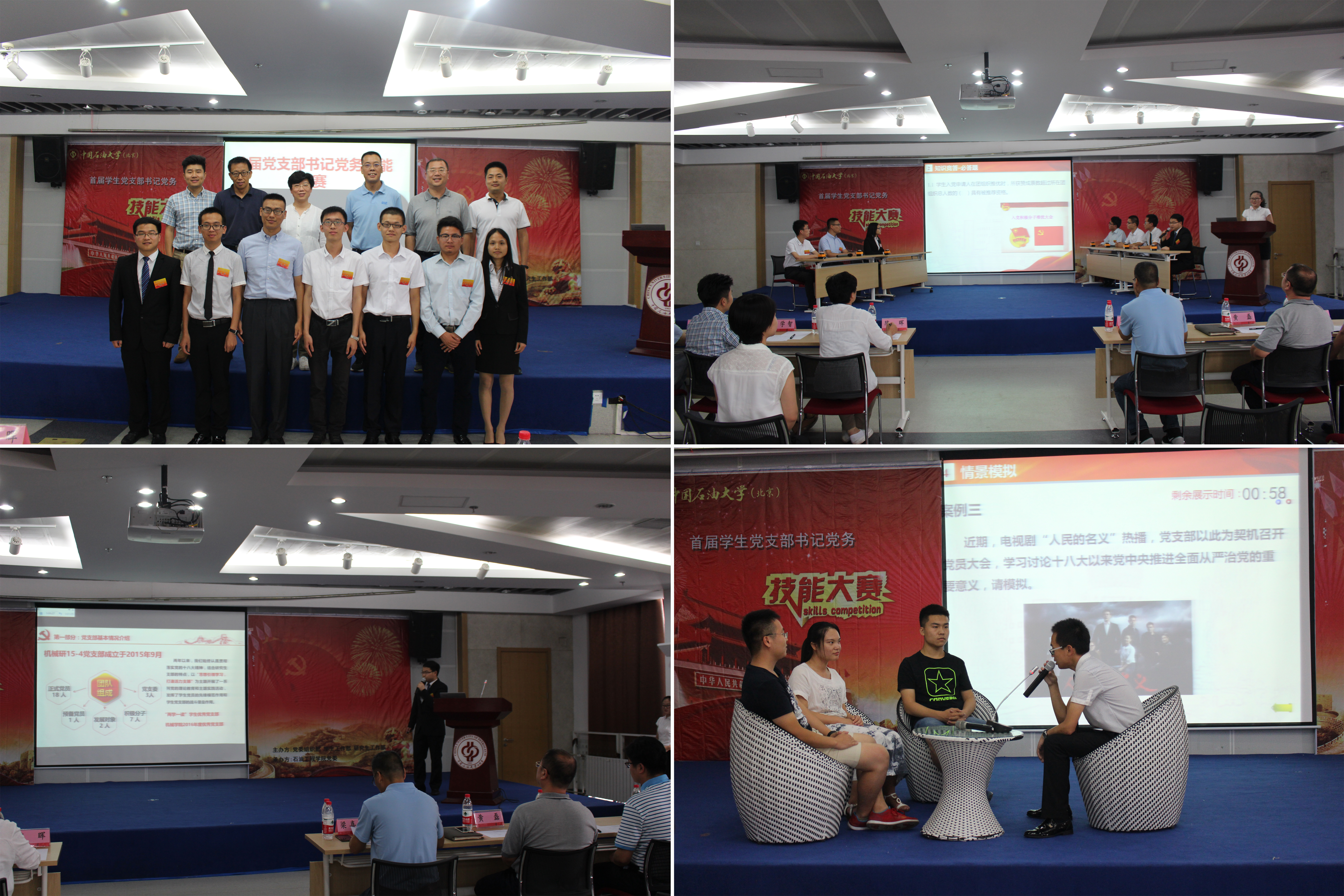 6月28日下午,中国石油大学(北京)首届学生党支部书记党务技能大赛决赛在学生活动中心410会议室举行。组织部部长梁喜书、副部长陈晖、学生工作处副处长黄磊及各学院党委副书记出席活动。大赛由党委组织部、学生工作处主办,石油工程学院党委承办。