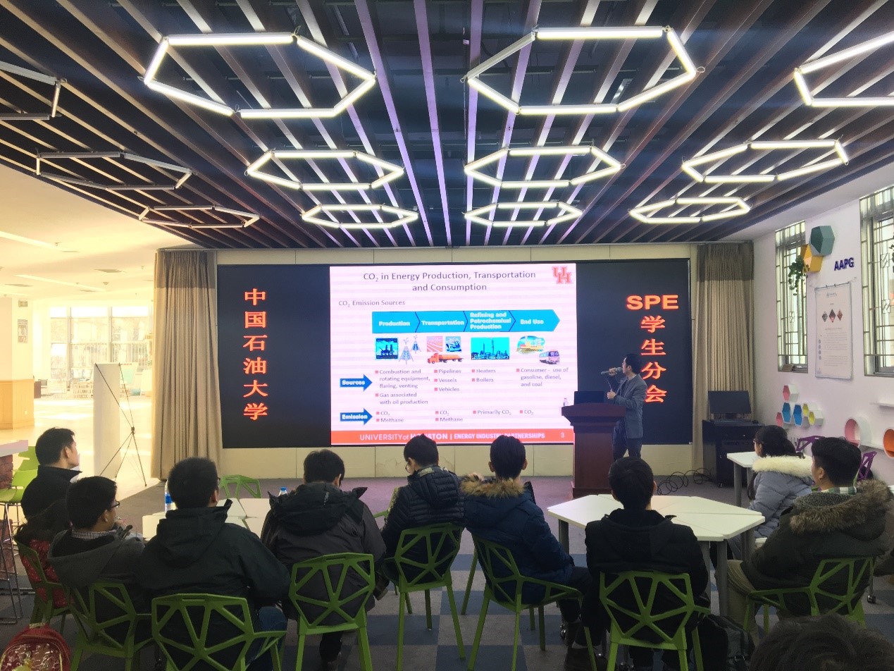 12月15日,SPE学生分会邀请美国休斯顿大学石油工程系博士后研究员陈培拉博士来校,在国际视野中心为广大师生做了题为《CO2驱油技术的历史、现状和技术挑战》的学术报告。