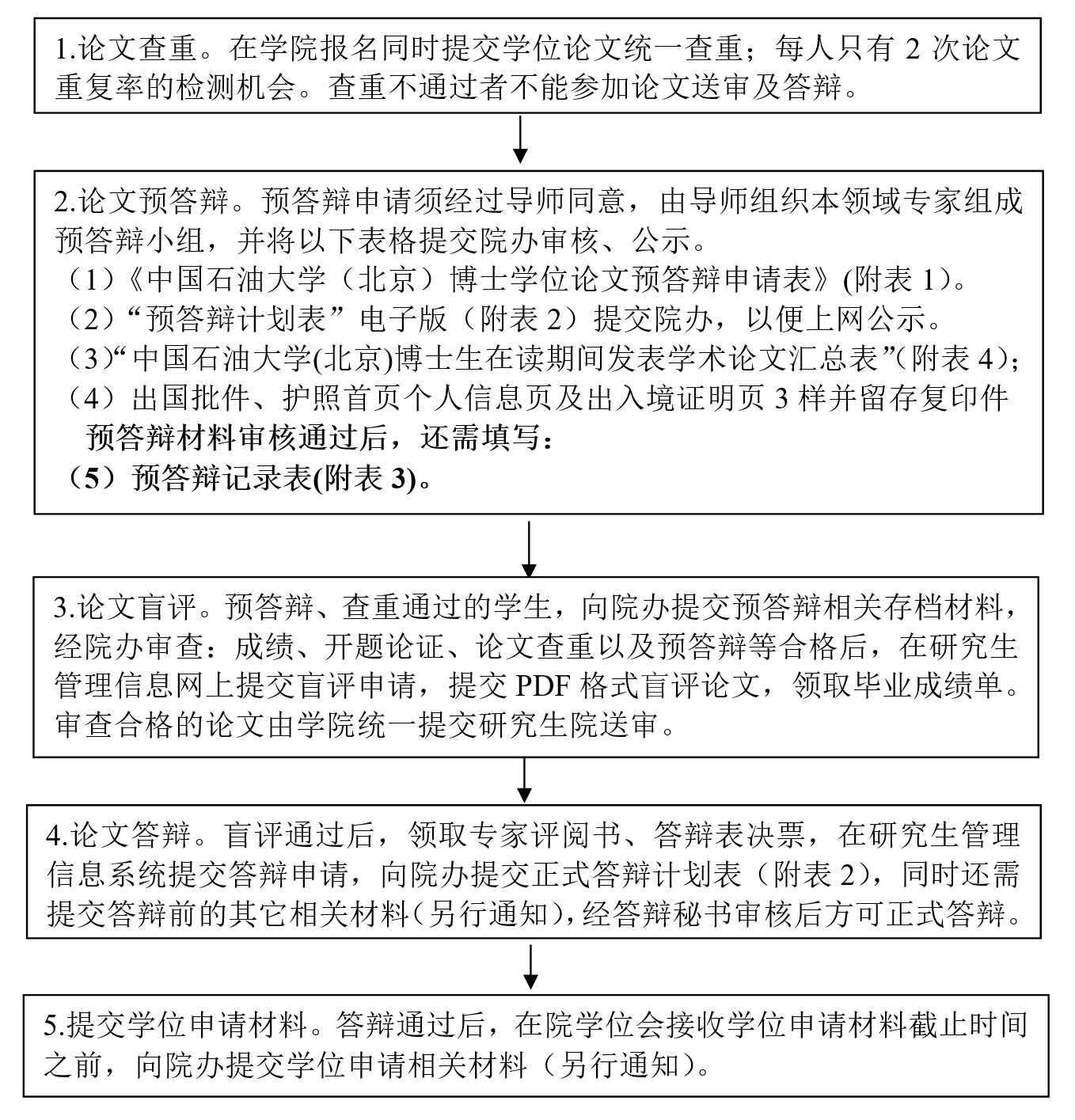(1)《中国石油大学(北京)博士学位论文预答辩申请表》(附表1)。