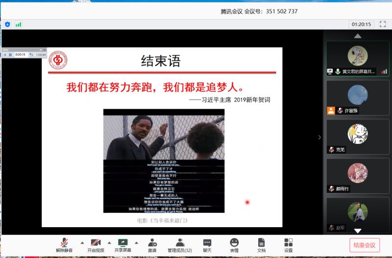 最后,黄文君和大家一起共勉一句话“我们都在努力奔跑,我们都是追梦人”,希望同学们能够不忘初心、追求卓越!