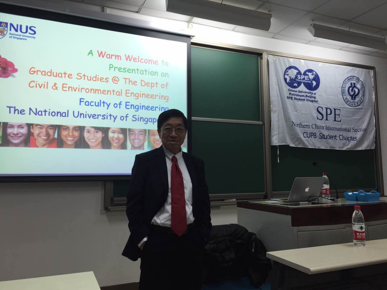 12月14日上午10点,新加坡国立大学土木与环境工程学院刘汉中教授来到我校,在逸夫楼101开展以“新加坡国立大学石油工程硕士、博士及博士后项目介绍”为主题的宣讲会。