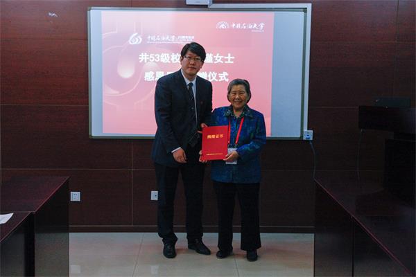 丁瑾校友是北京石油学院的首批学生,毕业后分配到玉门油田工作,随后参加大庆会战,并在大庆科委工作20余年。1980年后进入学校从事教育工作,后又到中国石油勘探开发研究院廊坊分院工作,直至退休。此次捐赠的1万元,将用于石油工程学院的学科建设和人才培养工作。