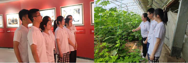 实践团深入闽宁镇,通过走访调研,实地参观等方式,探寻闽宁镇脱贫致富的“金钥匙”。走进闽宁新貌展示中心和赵鸿文化大院,学习中国东西部扶贫协作成功案例,感受闽宁红色文化旅游产业的乡村振兴新风向。在非遗工坊,与漆扇非遗传承人和麻编手艺人面对面交流学习非遗手艺,并同步多平台直播,让非遗文化“活”起来、“火”起来。实践团参观昌盛光伏生态科技园,“棚上光伏发电,棚下别有洞天。”结合当地扶贫工作设立的“光伏农业”模式实现了现代农业新型业态,打造绿色可持续发展格局。