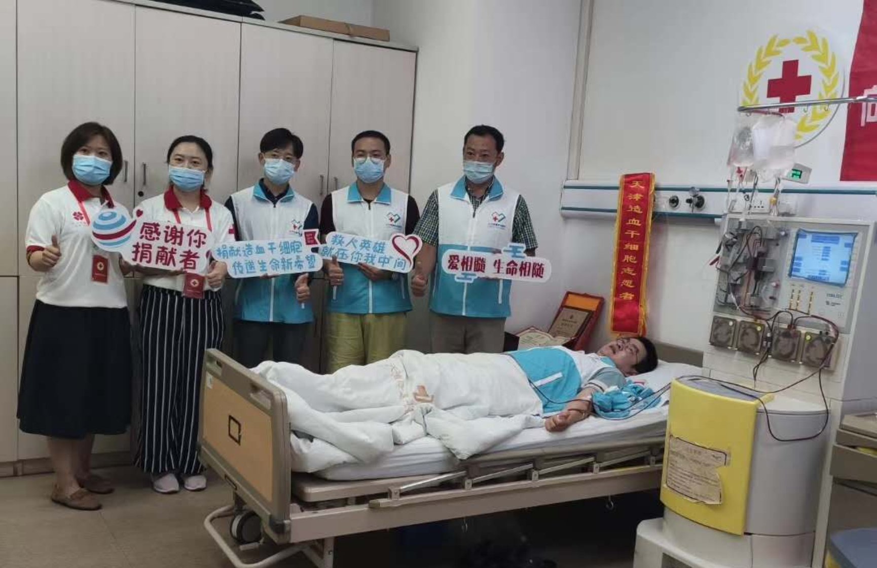 天津红会工作人员(右一右二)其他造血干细胞捐献者(左一二三)