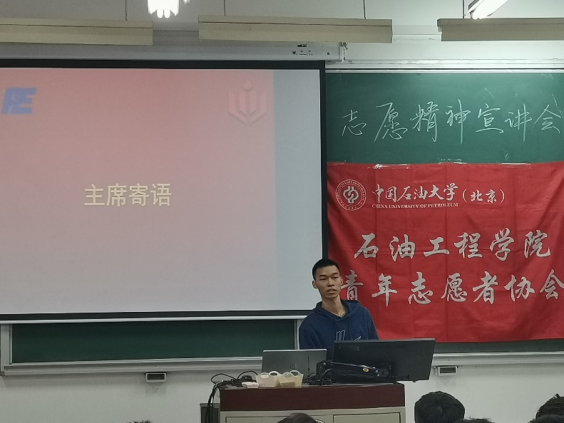 石工青协主席代表赖辰熙阐述了自己对于志愿服务活动的理解,并殷切表达了对于新一届石工青协发展的期待。主席在讲话中表示所谓勿以善小而不为,在生活中我们应该认真对待每一件小事。在以后的志愿生活中,他希望大家能牢记自己做志愿的初心,做到不求回报,真正的无私奉献。