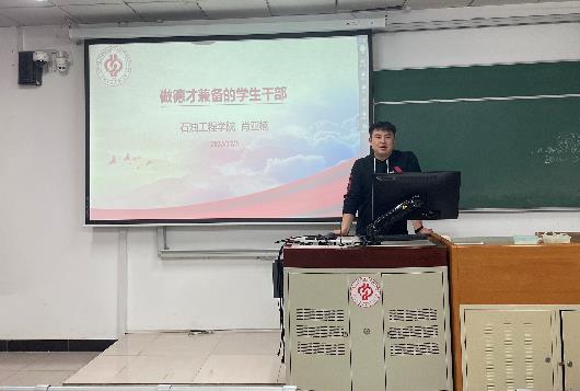 为了充分发挥团组织教育青年、引领青年的功能,进一步加强对团员青年、团学干部的培养教育力度,培养德才兼备的学生干部,2023年12月3日,石油工程学院团委书记肖亚楠面向学院全体团支部书记开展“做德才兼备的学生干部”的主题团课。