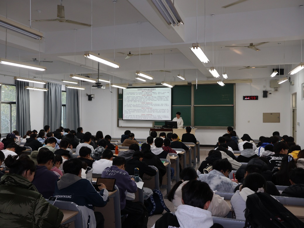 李文豪重点讲解了“挑战杯”的时间表和路线图。通过梳理“挑战杯”的赛制赛道、时间节点,他为全体同学讲清了“挑战杯”是什么、为何参加、如何备赛三个基本问题,并希望大家在不同赛道跑出最好成绩。