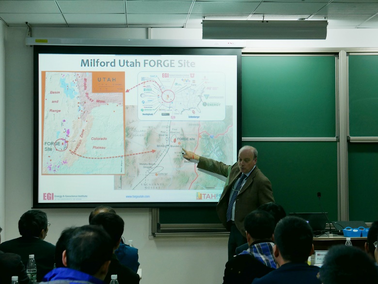 John McLennan教授是美国犹他大学化学与石油工程系USTAR教授、土木工程系兼职教授、能源与地质研究院研究院、石油工程系主任和美国岩石力学协会主席。在题为“EGS Opportunities and Challenges: Utah FORGE”的报告中,John教授介绍了美国能源部FORGE地热项目成立的背景及取得的研究进展、提出了EGS系统开采高温地热所面临的重要问题,分享了美国近40年来关于地热方面的研究经验,并对未来的发展方向进行了展望。