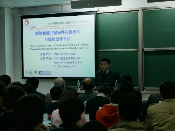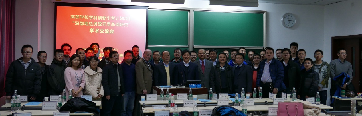2016年11月27日,高等学校学科创新引智计划项目“深部地热资源开发基础研究”学术交流会在中国石油大学(北京)举行。此次学术交流会由中国石油大学(北京)、油气资源与探测国家重点实验室、非常规油气协同创新中心共同主办。学术交流会由中国工程院院士、石油工程学院李根生教授主持。美国犹他大学能源与地质研究所高级科学家John教授、中国科学院地质与地球物理研究所地热资源研究中心主任庞忠和教授、中国石油大学(北京)油气井工程系主任黄中伟教授作了精彩的报告。美国犹他大学、中国科学院、中石化工程院、中国石油大学(北京)、西南石油大学等5家单位的25名研究人员出席会议,并吸引了100多位老师和学生前来参会。