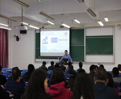 首先,张广清院长围绕党建工作、学科与学位、人才培养、科学研究、师资队伍建设、国际交流与合作、学院内部管理工作以及学生工作等方面对2018年学院工作进行了总结,对学院在教学、科研、学科等方面取得的突出成绩给予了肯定。