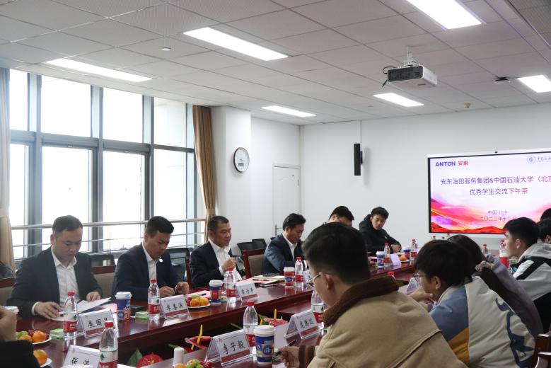 11月13日下午,安东油田服务集团在主楼A座1421会议室举办基层就业创业校友论坛——优秀学生交流下午茶活动。安东集团董事会主席罗林,执行副总裁刘国庆,中国大区市场总监崔为涛,油气田开发研究院副院长柳誉剑,石油同学资源管理公司副总经理李善滨出席论坛并作分享,石油工程学院辅导员刘瑞恒及15名优秀学生代表参加论坛,论坛由刘瑞恒主持。