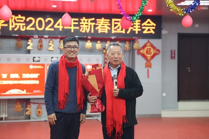 团拜会整场氛围轻松愉悦,主要围绕“耕耘不辍,嘉惠弥长”感念师恩专题和“生逢盛世,不负盛世”青春昂扬专题分别展开。其中包括青年教师为离退休教师代表献花环节,退休教师逐一分享了在教书育人过程中的难忘片段并对青年老师表达了期待和嘱托,退休教师李秀生倾情献唱《沁园春·雪》,精神矍铄、尽显风貌。学院教职工们和学生代表分别带来喜庆欢乐的舞蹈和深情美妙的歌曲,充分展现出学院师生们的个人风采和人格魅力,也体现了学院在深入推进“三全育人”改革发展、校园文化建设等方面的成效实绩。