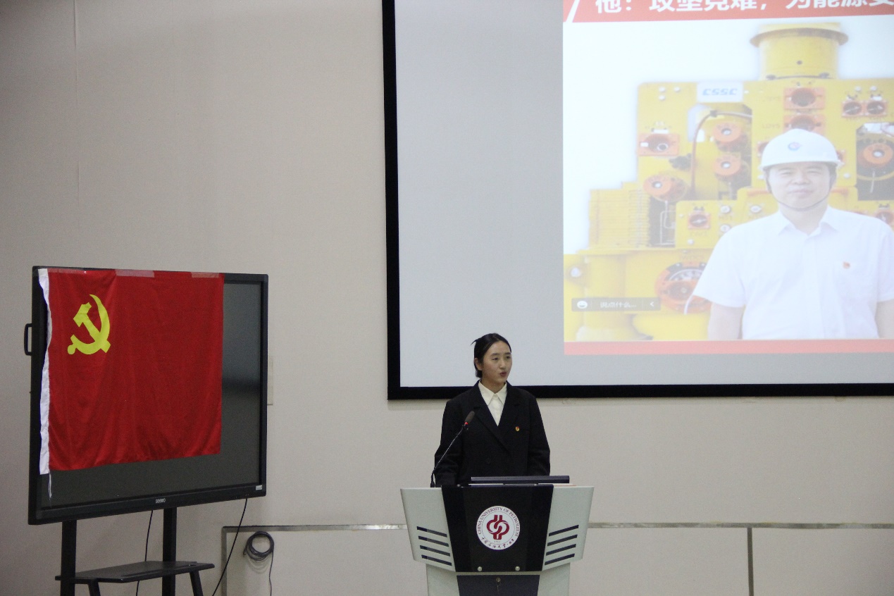 中国石油大学(北京)石工本21-4团支部书记李博宁开展题为“弘扬铁人精神,赓续红色血脉”的主题宣讲。她讲述了三代“铁人”接续奋斗为祖国献石油的感人故事,分享了中石大克拉玛依校区118名毕业生践行习近平总书记的重要回信精神,坚定人生选择,赓续老一辈石油人的红色基因,为石油事业贡献青春力量,以自己的实际行动不断弘扬铁人精神的故事,同时她号召更多的中石大学子矢志奋斗,砥砺前行,投身祖国石油事业。
