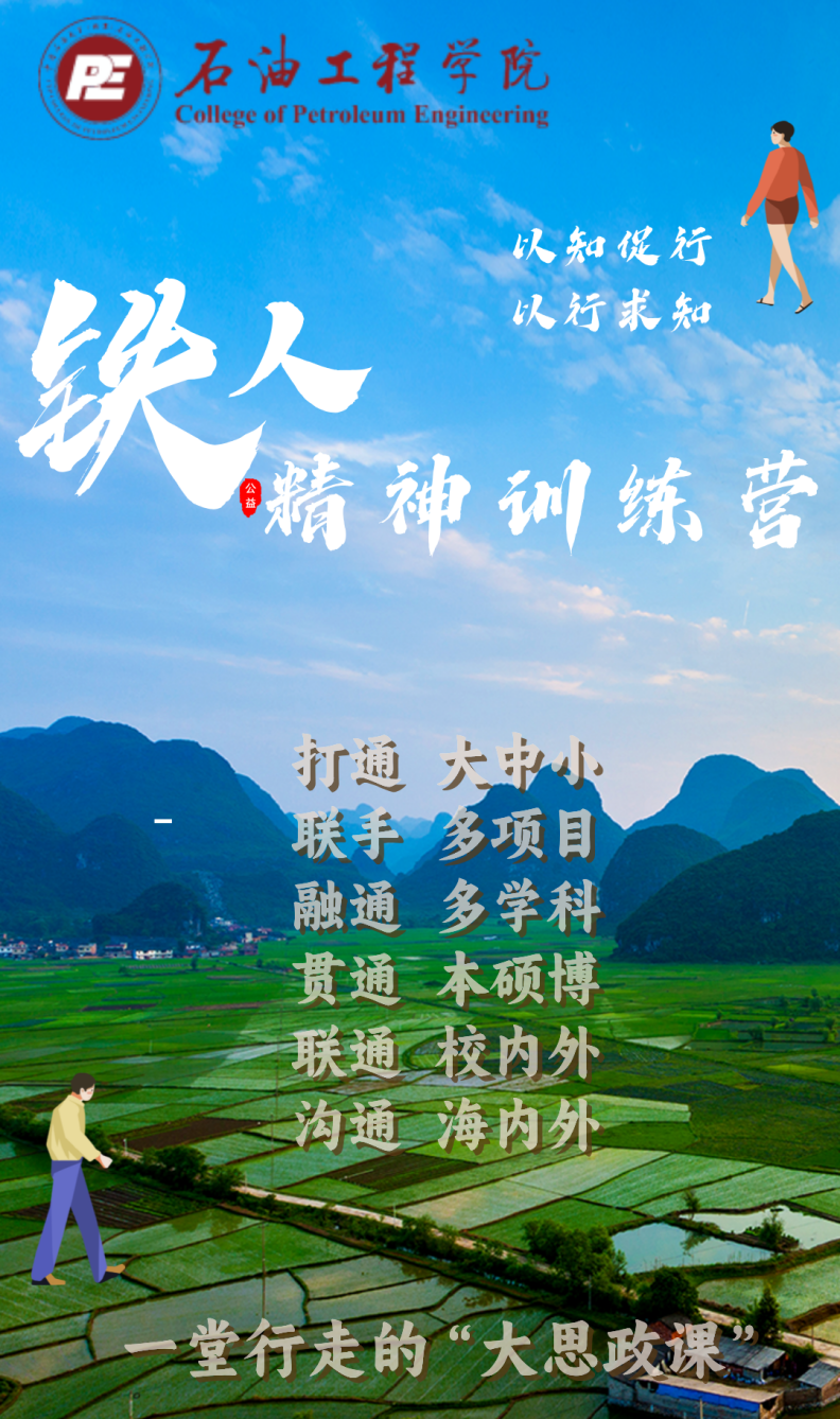 2024年7月到8月,中国石油大学(北京)石油工程学院以“奋进迎华诞,赓续石油魂,争做新铁人”为主题,举办了为期2个月的第六期“铁人精神训练营”,精心打造“迎华诞——续传承——办实事——绘新篇”4大专题、14个主题的实践活动,组建74个营小组,参与人数达500余人,奔赴全国34个省市,于广袤大地上探寻真知,在知行合一中磨砺品性。