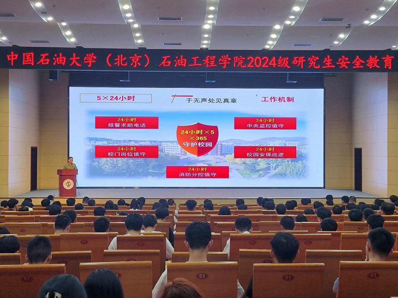 为筑牢学生心理健康和校园安全防线,进一步帮助2024级研究生新生适应校园生活、尽快实现角色转变,8月27日下午,石油工程学院在中油大厦三层报告厅开展石油工程学院2024级研究生心理健康、校园安全专题讲座。中石大心理健康教育及咨询中心教师郭梅英、保卫处正科级干事王超、2024级研究生辅导员李文豪出席讲座。讲座由李文豪主持。