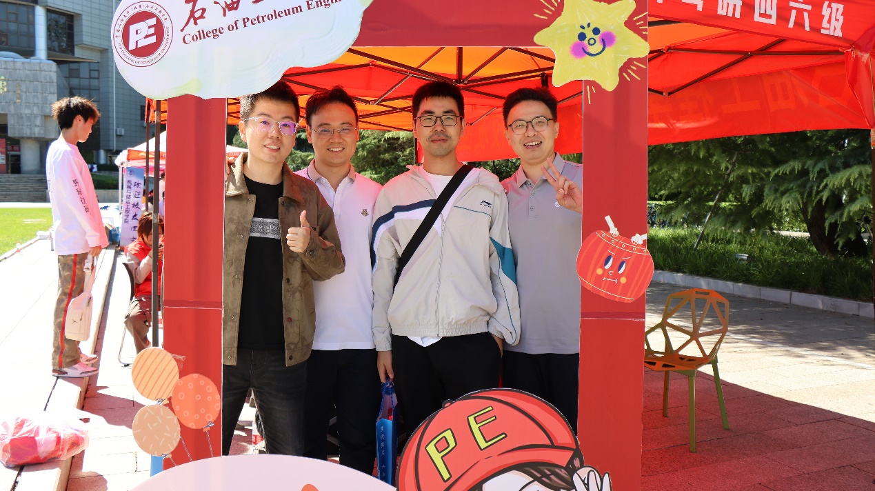 学院在校北门设立返校接待处,安排志愿者20余人,累计接待返校校友34人。所有校友均在图书馆北侧的校友墙拍照打卡,领取纪念品,其中采油工程1990级本科生集中返校并在接待处合影留念,氛围异常温馨热烈!