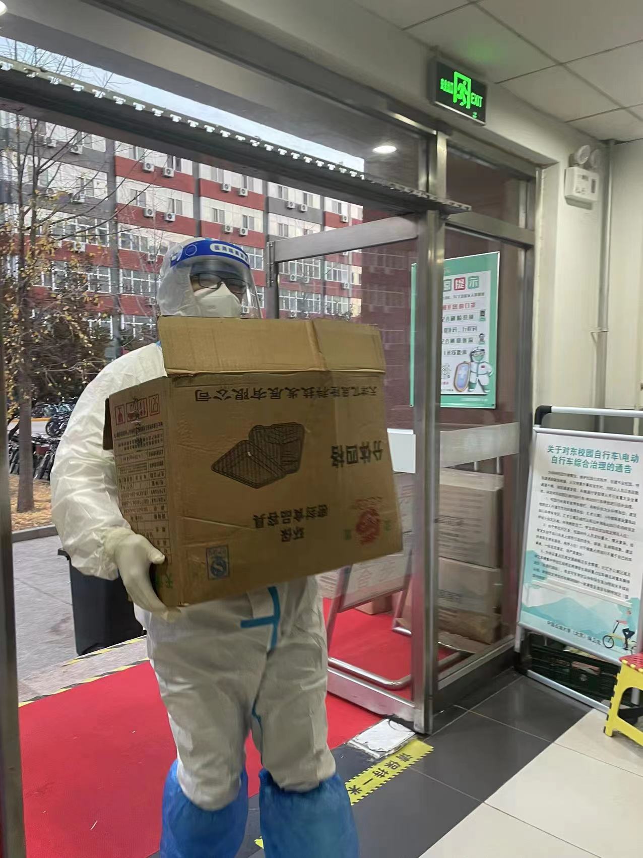 工程力学系全体男教师主动报名参加志愿服务保障队伍。其中李世远老师第一时间进驻疫情最前线东校园,协助完成学生送餐、转运和搬运片区防疫物资等工作。同时,应学生需求,积极为学生搬运急需的物品,保障被转运学生及东校园内学生求职、应考等顺利进行。校外教师参与校区间运输工作,搬运学生滞留物品,保障其学习考试需求,协助学院解决本科生地质实习纸张不足问题、滞留物品搬运等问题。