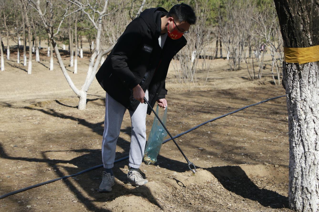 图10、11:新城滨河森林公园捡拾烟头、白色垃圾志愿活动
