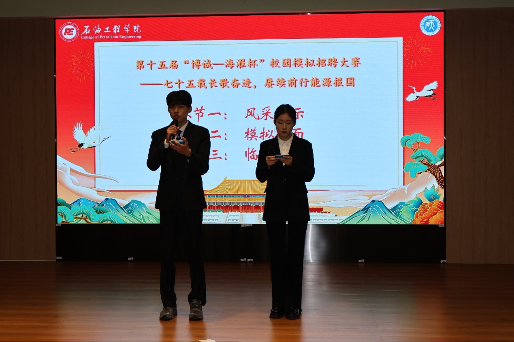 第十五届“博诚—海濯杯”校园模拟招聘大赛在掌声中落下帷幕。大赛的圆满完成标志着参赛学生求职能力的显著提升、校园职业生涯规划教学的成功实践、校企双向合作模式的纵深发展。未来,石油工程学院将不断创新工作方法和活动形式,扎实推进大学生就业指导工作,实现学生自我认知与职业规划的有机融合。