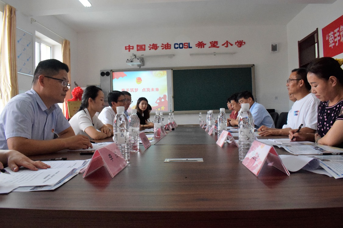 7月14日下午,团中央青年发展部职业发展处、中石大团委、中海油团委和中国海油COSL希望小学的相关负责人开展“牵手筑梦,点亮未来”我为青年办实事调研座谈会。肖佳主持座谈会。