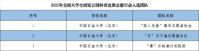 近日,由中共海南省委社会工作部、海南省林业局、海南热带雨林国家公园管理局、中国青年报社主办的2025年全国大学生国家公园科普宣教志愿行动团队入围名单公布。我院 “铁人先锋” 青年志愿者协会、 “石” 志不渝志愿服务队、青 “石” 助湘行实践团三支团队入选。